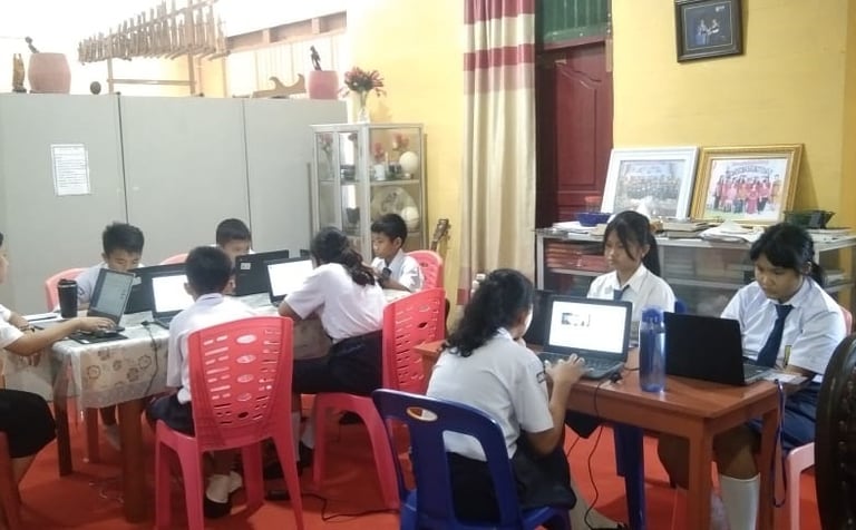 Program bahasa Inggris yang kreatif dan inspiratif bagi siswa kami di Sekolah Harapan Nias Selatan.